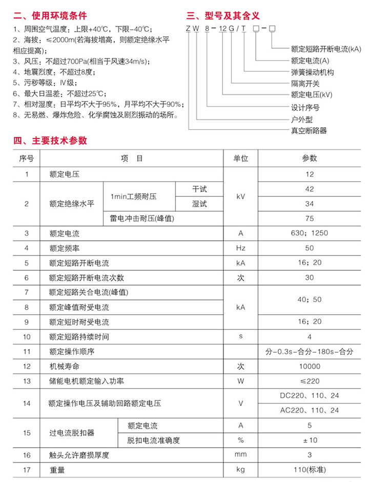 ZW8-12/630-25户外高压真空断路器
